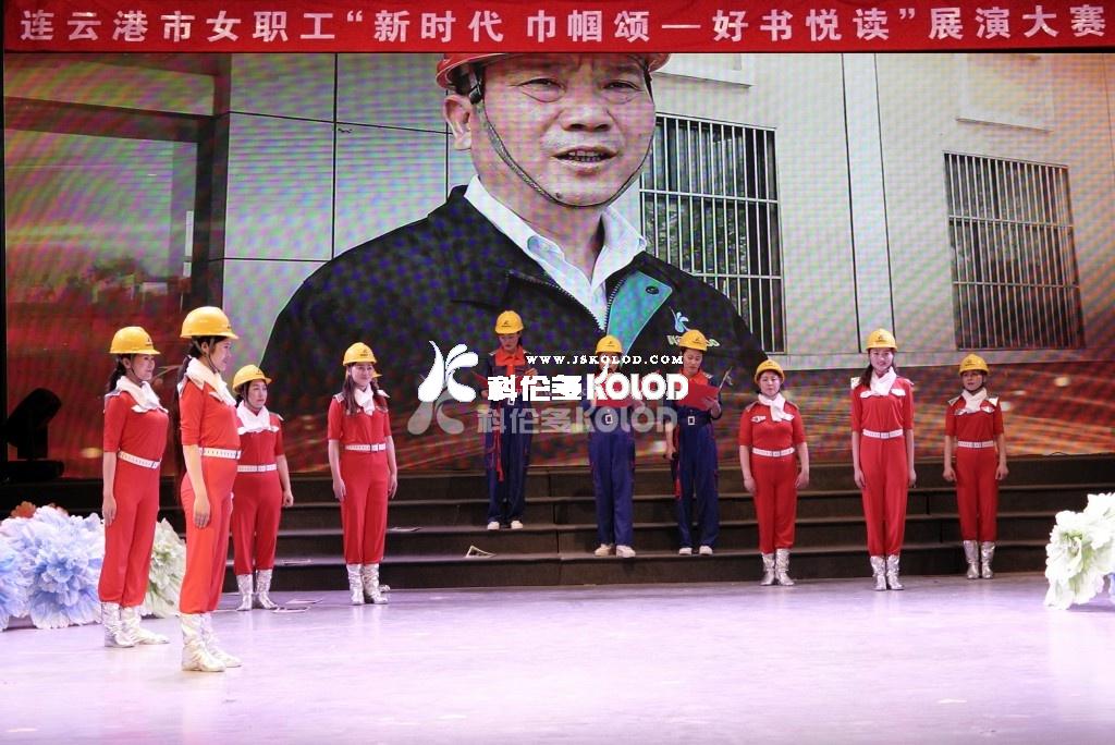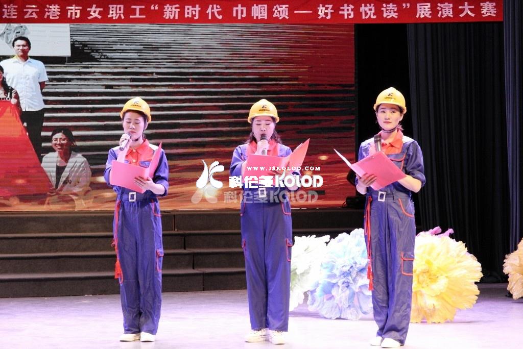 2018年5月23日,連云港市總工會(huì )在市文化館舉辦女職工“新時(shí)代、巾幗頌、好書(shū)閱讀”展演大賽,全市共有58個(gè)隊參加比賽,我公司作為灌云縣唯一的企業(yè)代表隊參加了比賽,參賽的節目是詩(shī)朗誦伴舞,朗誦的題目是:“科倫多、我們的書(shū)香家園”。最后經(jīng)過(guò)評委打分,我公司參賽隊獲得第29名。圖為科倫多公司代表隊參加比賽時(shí)的精彩畫(huà)面。