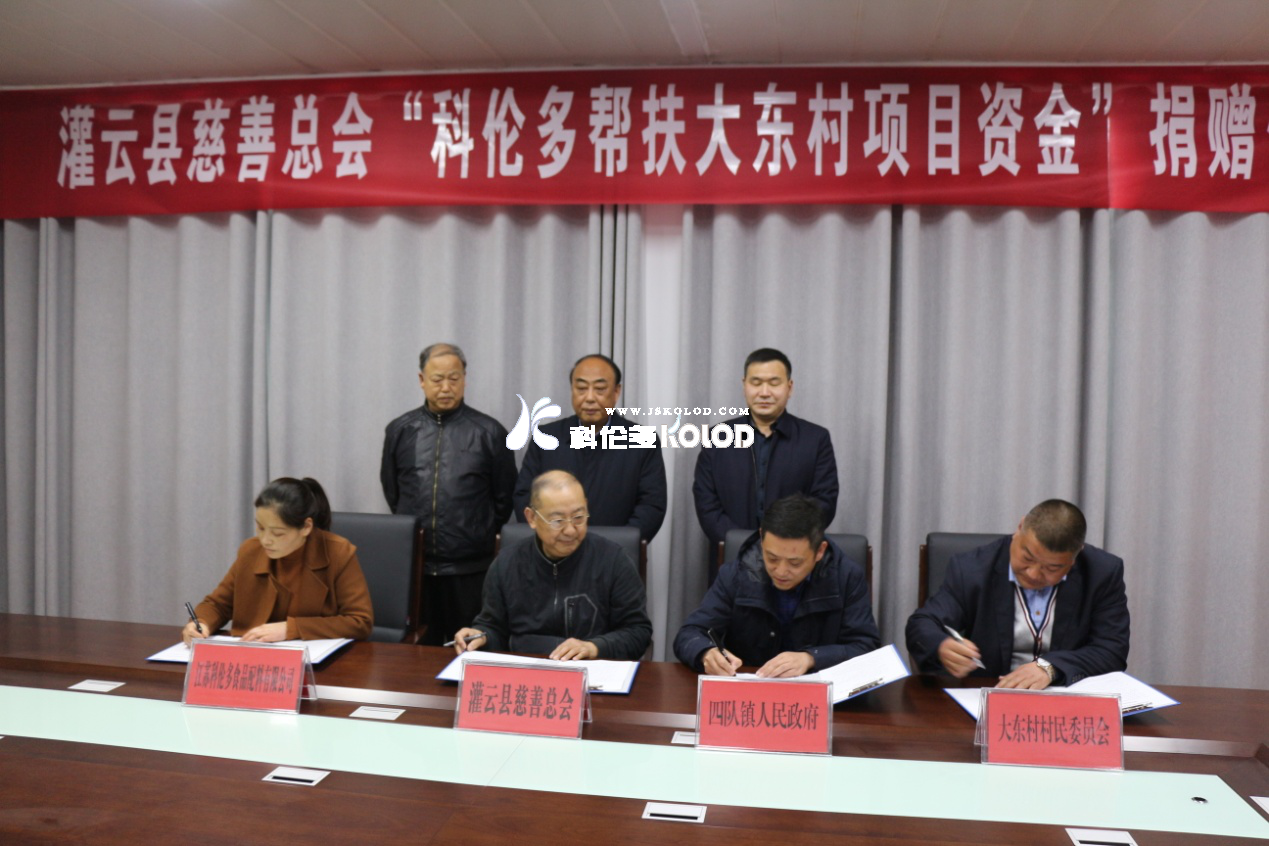 2020年3月26日下午,江蘇科倫多食品配料有限公司通過(guò)灌云縣慈善總會(huì ),向灌云縣四隊鎮大東村捐款15萬(wàn)元,用于大東村文化廣場(chǎng)項目建設,助力鄉村發(fā)展再上臺階,為構建和諧灌云貢獻出力量。