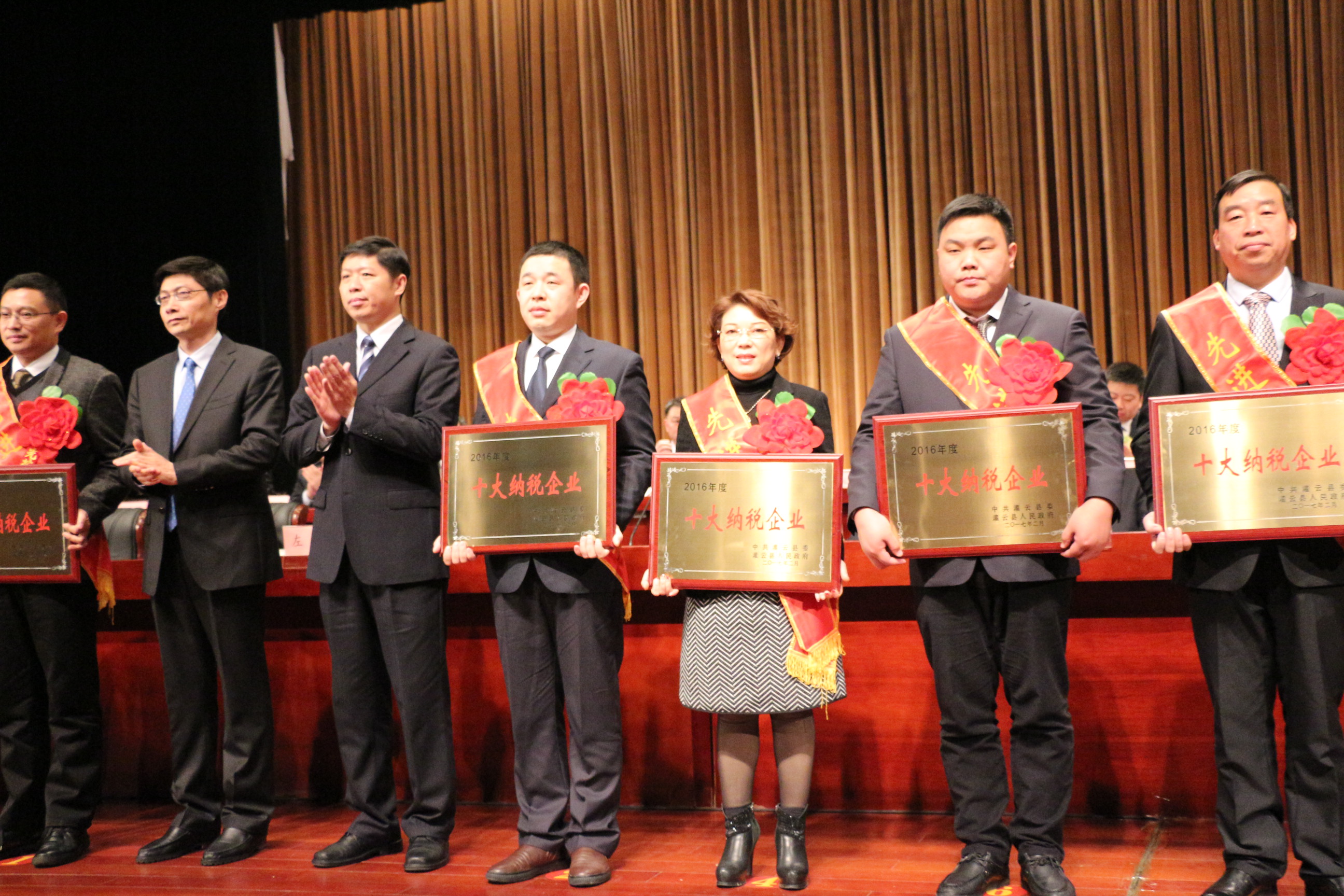 2017年2月4日,新年上班第一天,灌云縣政府所有機關(guān)單位召開(kāi)全縣會(huì )議,對2016年度先進(jìn)代表進(jìn)行表彰。公司以開(kāi)發(fā)區第一、全縣第四的納稅額被授予“2016年度十大納稅企業(yè)”,總經(jīng)理翁京蓉女士代表公司參加授獎儀式。